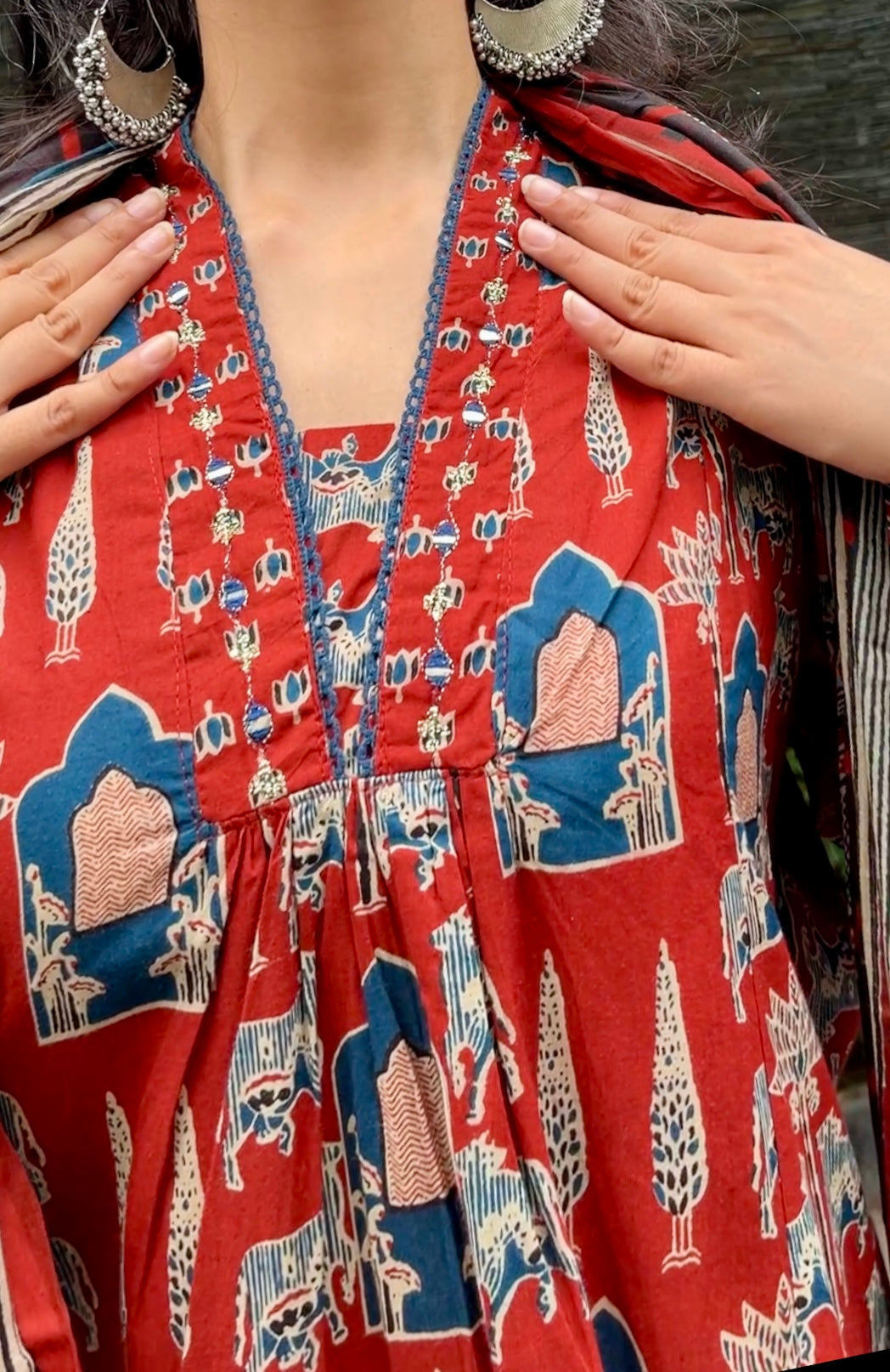 Jaipuri Block Print Pure Cotton 3-Piece Kurti Set