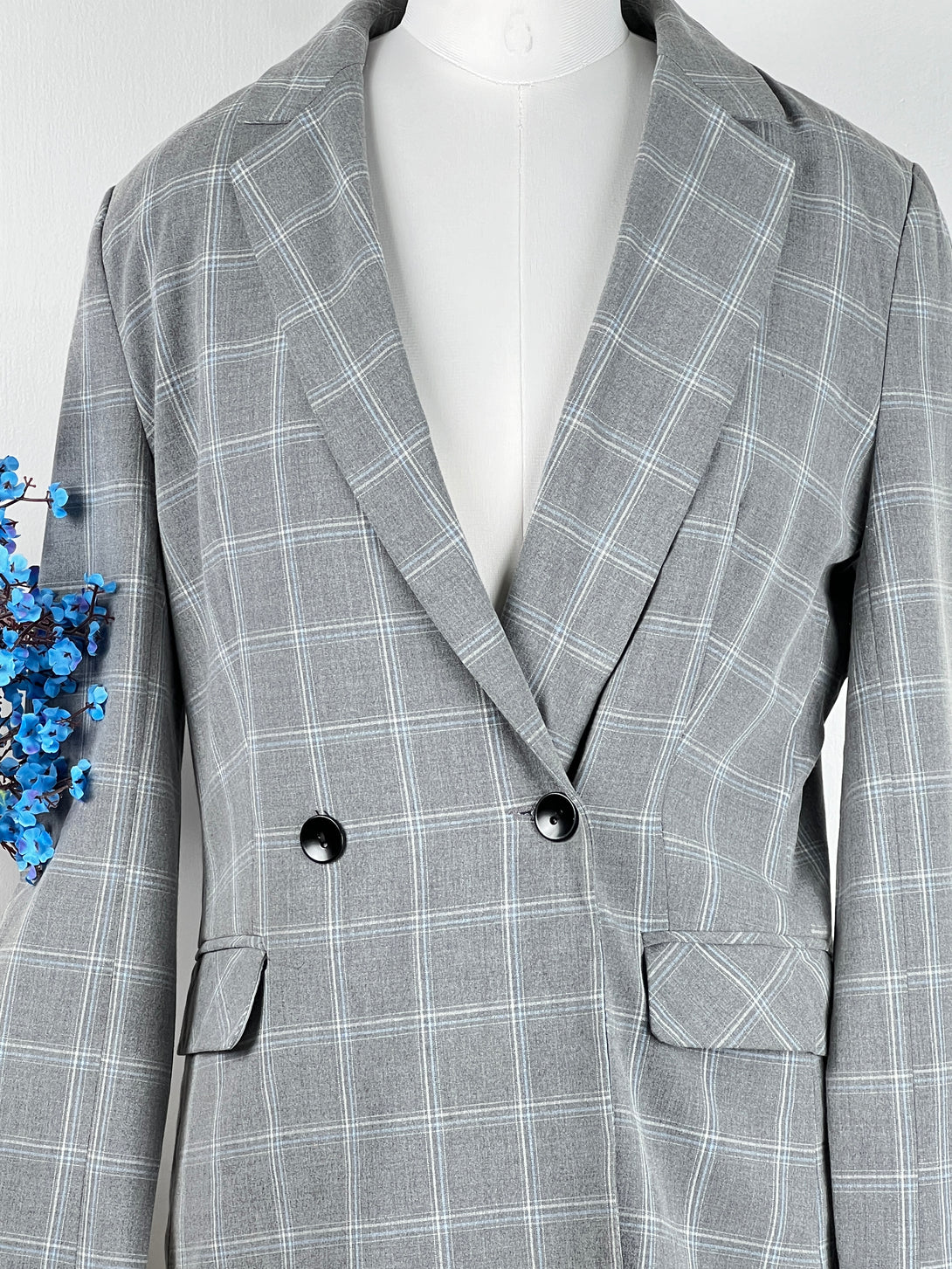 Retro Double-Breast Gray Blazer